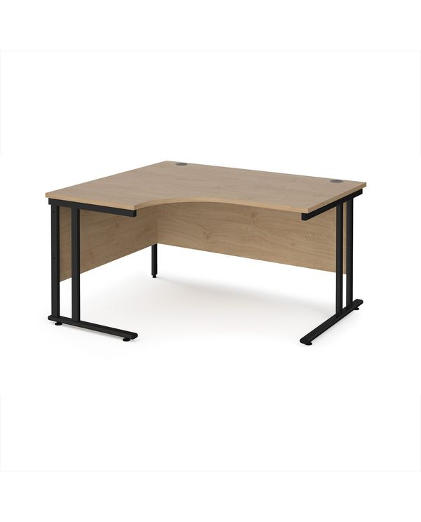 Maestro 25 left hand ergonomic desk 1400mm wide - black cantilever leg frame, Kendal oak top