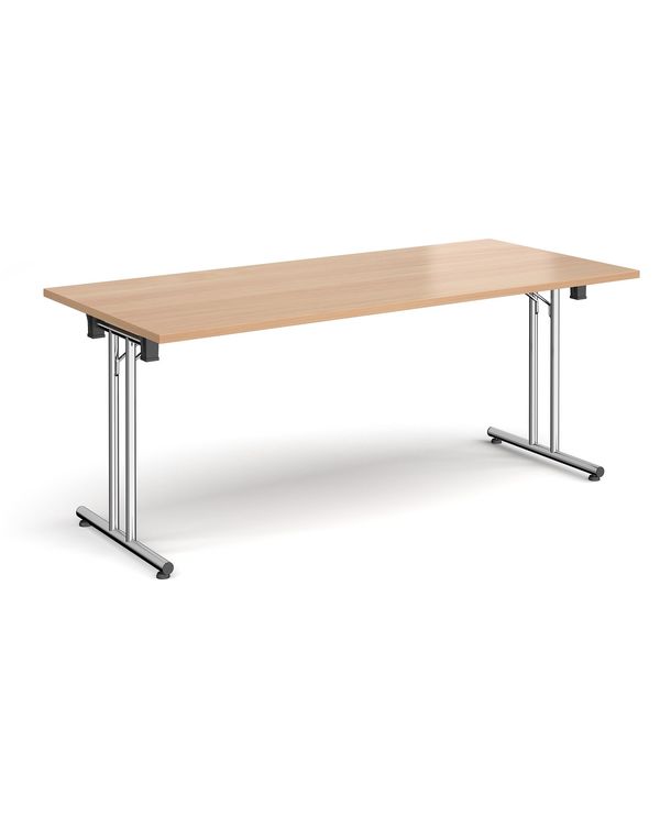 Rectangular folding leg table with chrome legs and straight foot rails 1800mm x 800mm - beech