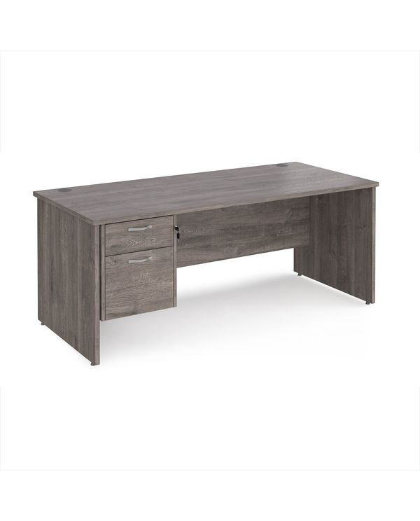 Maestro 25 straight desk 1800mm x 800mm with 2 drawer pedestal - grey oak top with panel end leg