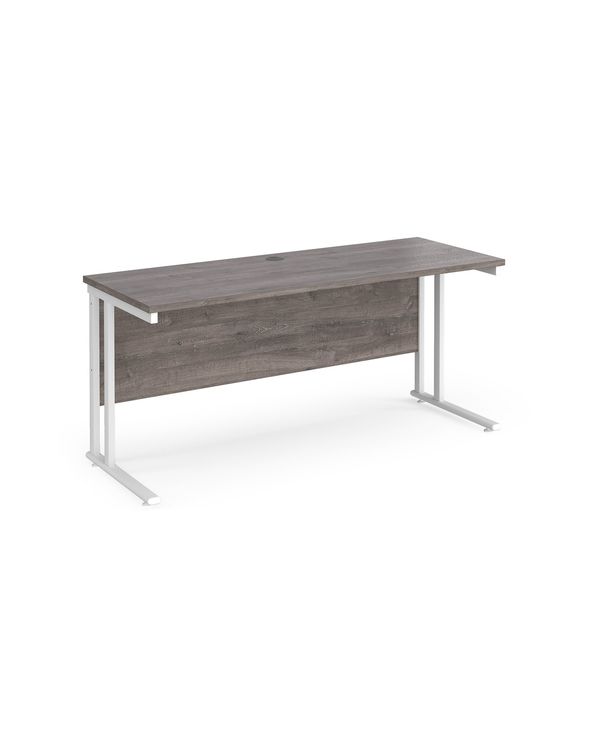 Maestro 25 straight desk 1600mm x 600mm - white cantilever leg frame, grey oak top