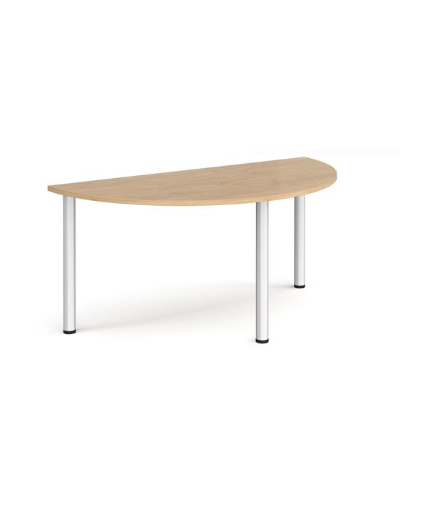 Semi circular silver radial leg meeting table 1600mm x 800mm - Kendal oak
