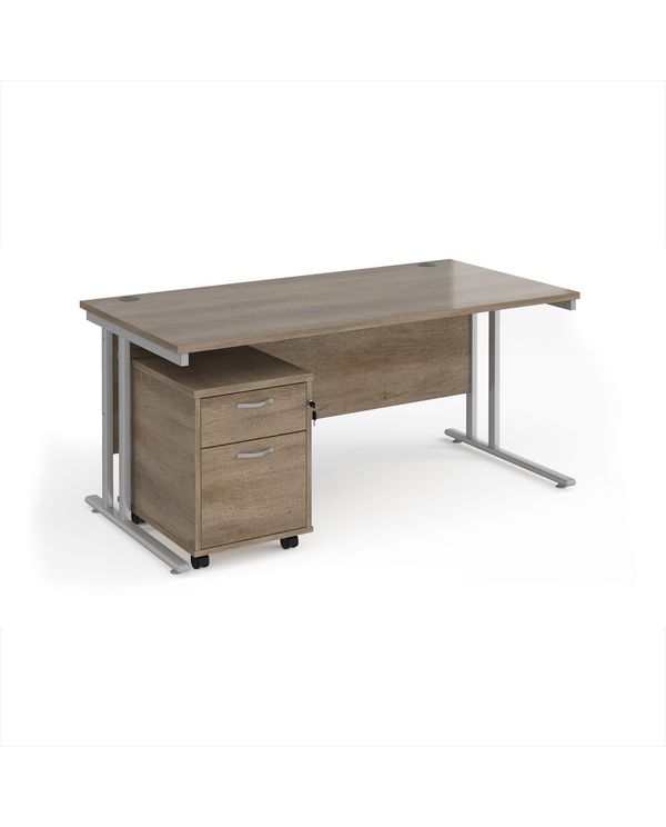 Maestro 25 straight desk 1600mm x 800mm with silver cantilever frame and 2 drawer pedestal - Nebraska Oak