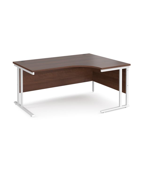 Maestro 25 right hand ergonomic desk 1600mm wide - white cantilever leg frame, walnut top