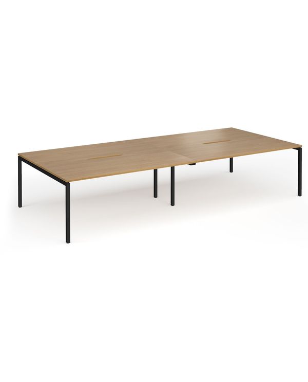 Connex Goal-Post 3600 x 1600 x 725mm Back to Back Desk (4 x 1800mm) - Black Frame / Oak Top