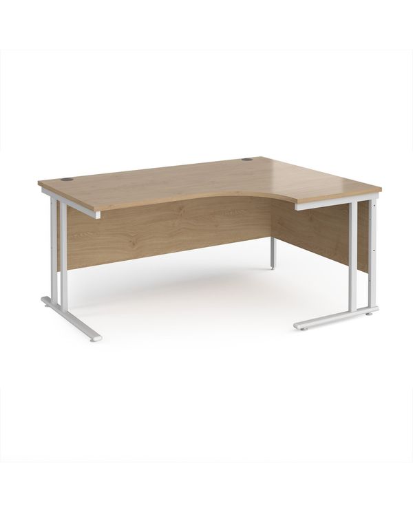 Maestro 25 right hand ergonomic desk 1600mm wide - white cantilever leg frame, Kendal oak top