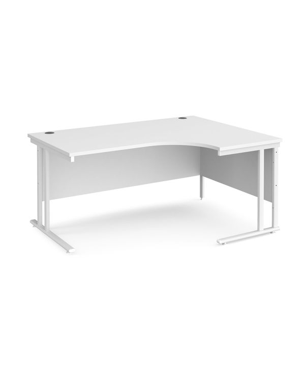 Maestro 25 right hand ergonomic desk 1600mm wide - white cantilever leg frame, white top