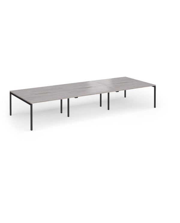 Connex Goal-Post 4200 x 1600 x 725mm Back to Back Desk (6 x 1400mm) - Black Frame / Grey Oak Top
