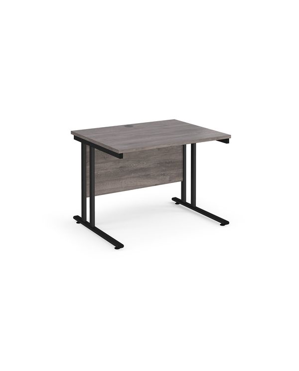 Maestro 25 straight desk 1000mm x 800mm - black cantilever leg frame, grey oak top