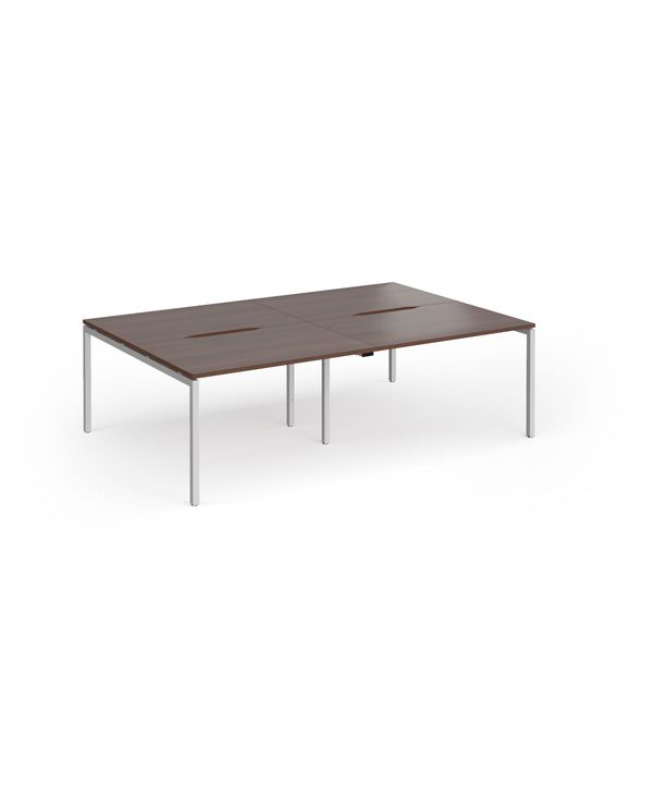 Connex Goal-Post 2400 x 1600 x 725mm Back to Back Desk (4 x 1200mm) - Silver Frame / Walnut Top