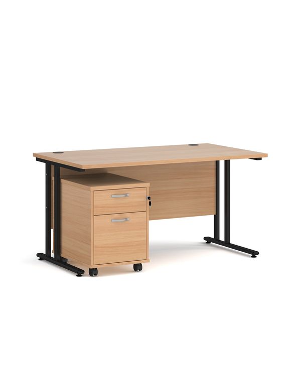 Maestro 25 straight desk 1400mm x 800mm with black cantilever frame and 2 drawer pedestal - beech