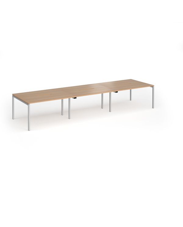 Connex Goal-Post 4200 x 1200 x 725mm Back to Back Desk (6 x 1400mm) - Silver Frame / Beech Top
