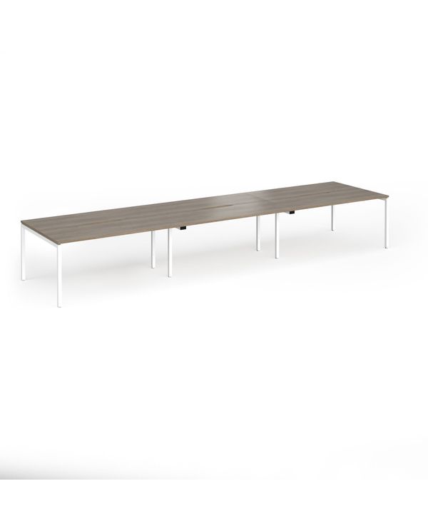 Connex Goal-Post 4800 x 1200 x 725mm Back to Back Desk (6 x 1600mm) - White Frame / Nebraska Oak Top