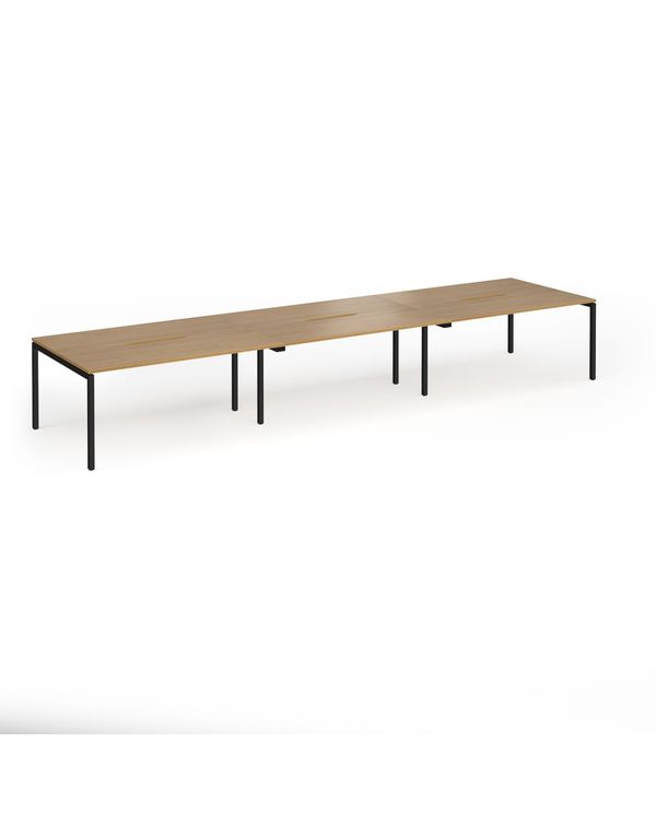 Connex Goal-Post 4800 x 1200 x 725mm Back to Back Desk (6 x 1600mm) - Black Frame / Oak Top