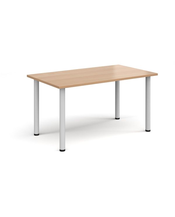 Rectangular white radial leg meeting table 1400mm x 800mm - beech