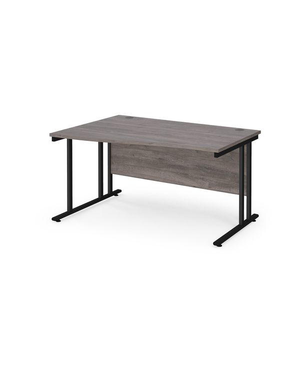 Maestro 25 left hand wave desk 1400mm wide - black cantilever leg frame, grey oak top