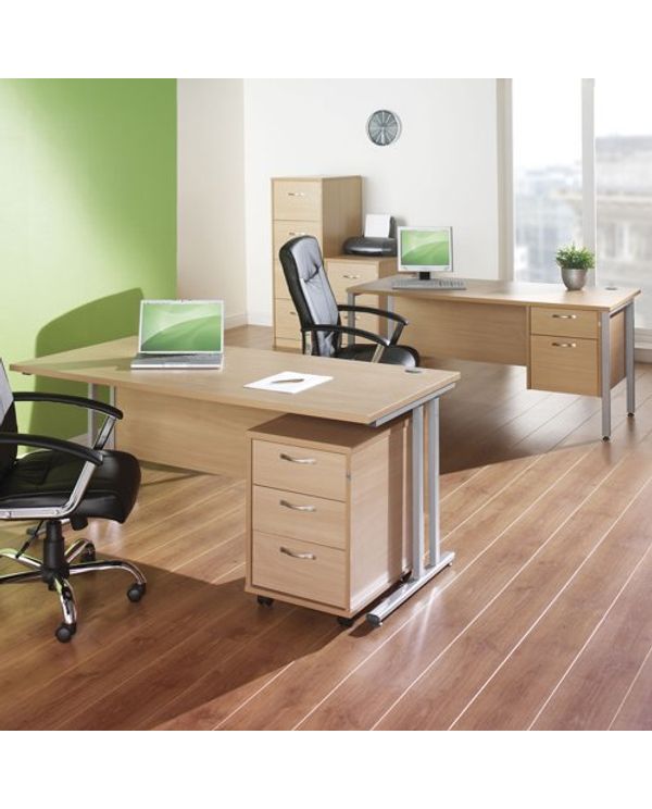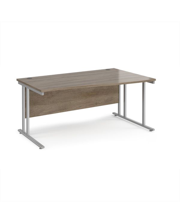 Maestro 25 right hand wave desk 1600mm wide - silver cantilever leg frame, Nebraska oak top