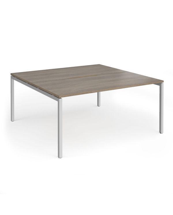Connex Goal-Post 1600 x 1600 x 725mm Back to Back Desk (2 x 1600mm) - Silver Frame / Nebraska Oak Top