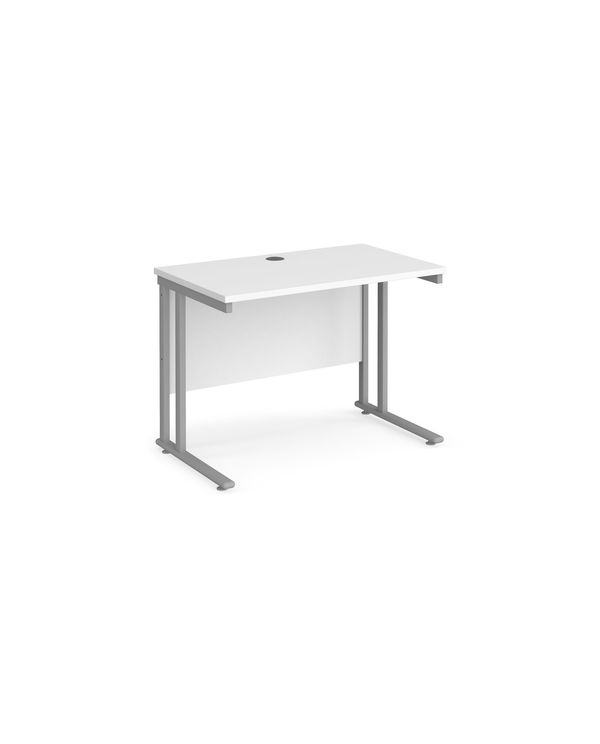 Maestro 25 straight desk 1000mm x 600mm - silver cantilever leg frame, white top