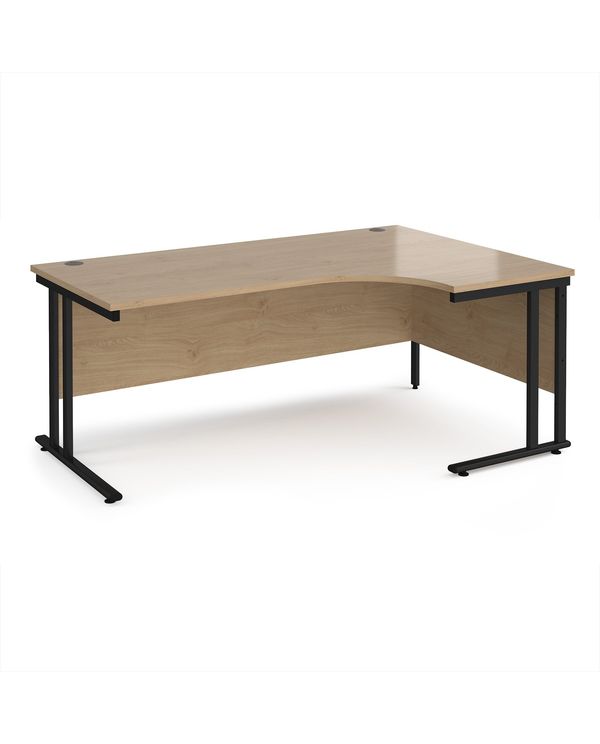 Maestro 25 right hand ergonomic desk 1800mm wide - black cantilever leg frame, Kendal oak top