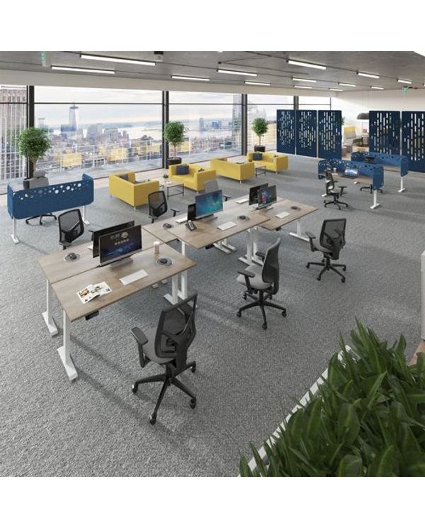 Elev8 Luxe Straight Sit-Stand Desk 1400mm x 800mm - Black Frame / Beech Top