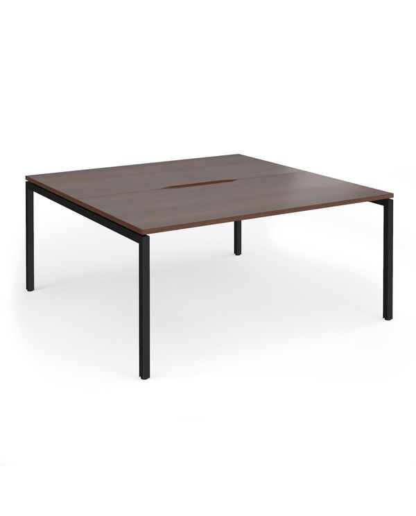Connex Goal-Post 1600 x 1600 x 725mm Back to Back Desk (2 x 1600mm) - Black Frame / Walnut Top