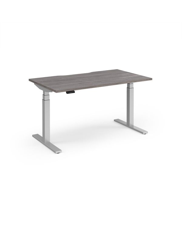 Elev8 Luxe Straight Sit-Stand Desk 1400mm x 800mm - Silver Frame / Grey Oak Top