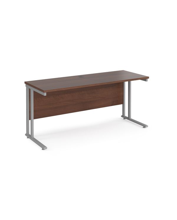 Maestro 25 straight desk 1600mm x 600mm - silver cantilever leg frame, walnut top