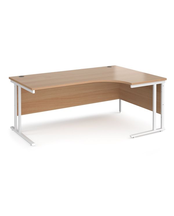 Maestro 25 right hand ergonomic desk 1800mm wide - white cantilever leg frame, beech top