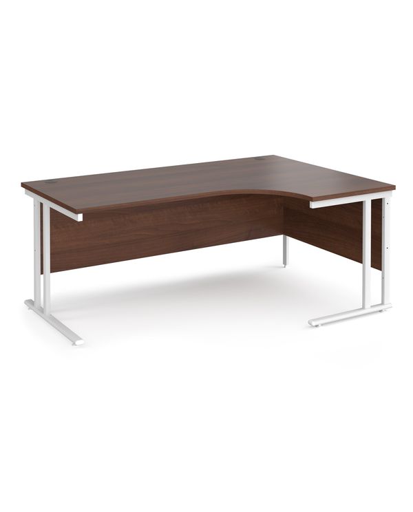 Maestro 25 right hand ergonomic desk 1800mm wide - white cantilever leg frame, walnut top