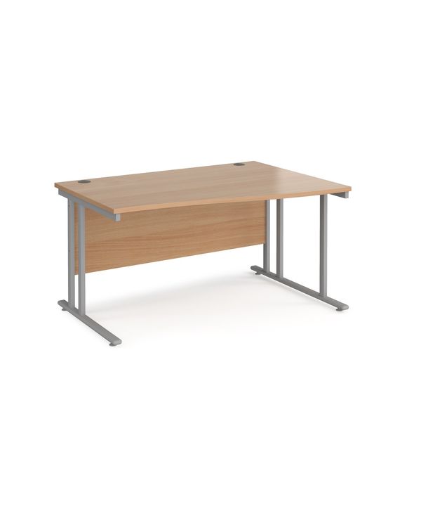 Maestro 25 right hand wave desk 1400mm wide - silver cantilever leg frame, beech top