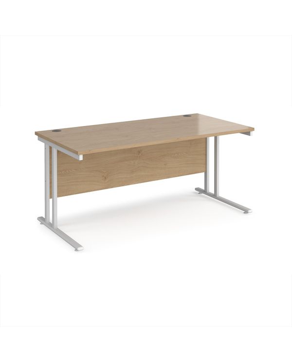 Maestro 25 straight desk 1600mm x 800mm - white cantilever leg frame, Kendal oak top
