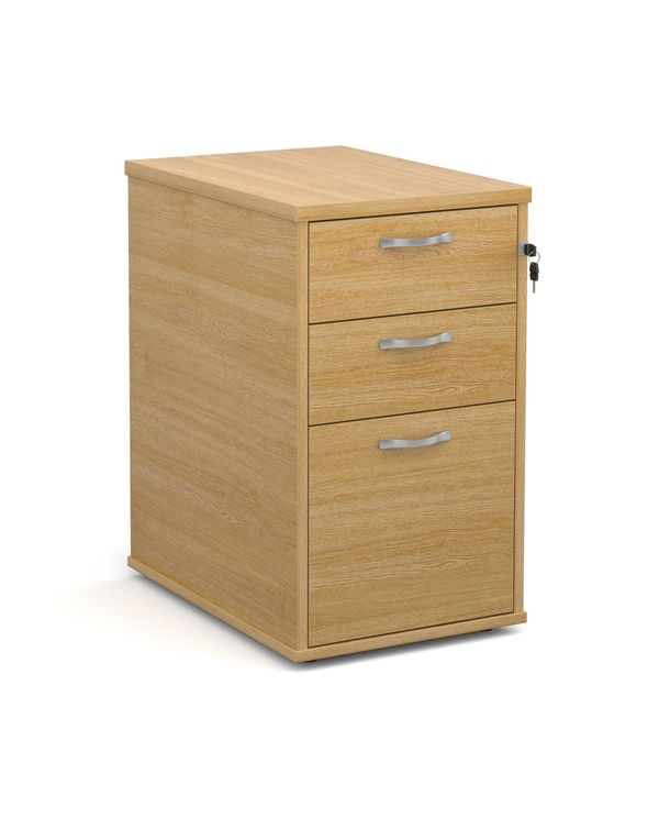 Desk high 3 drawer pedestal with silver handles 600mm deep - oak