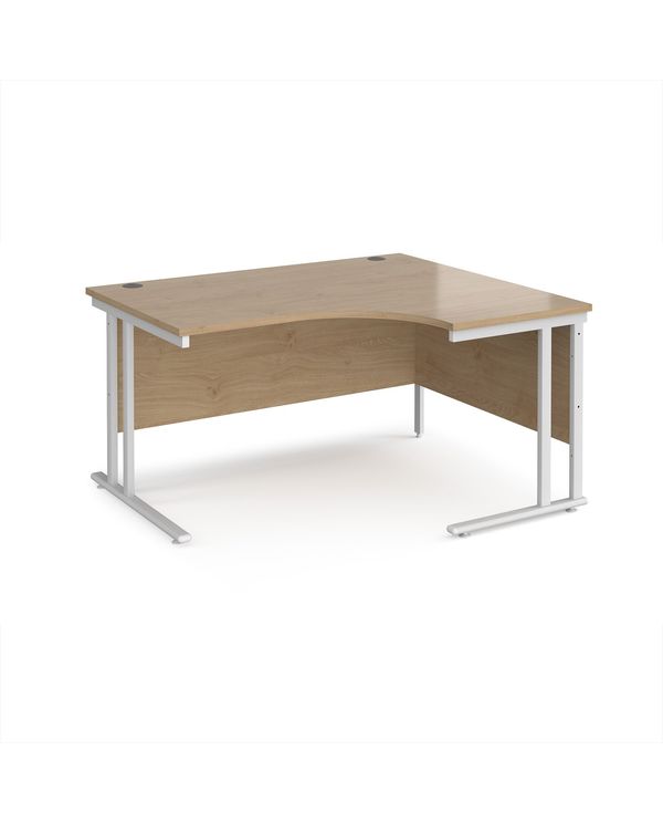 Maestro 25 right hand ergonomic desk 1400mm wide - white cantilever leg frame, Kendal oak top