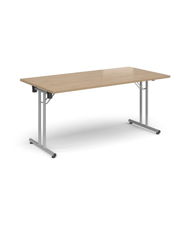 Rectangular folding leg table with silver legs and straight foot rails 1600mm x 800mm - Kendal Oak