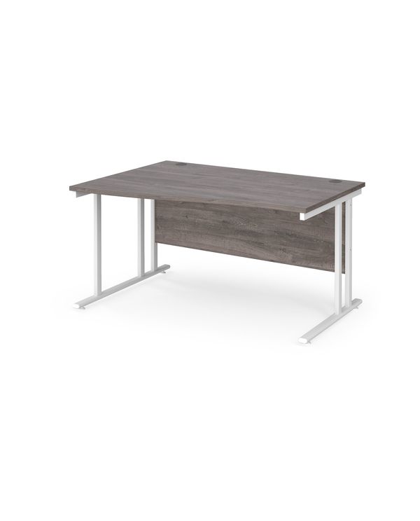 Maestro 25 left hand wave desk 1400mm wide - white cantilever leg frame, grey oak top