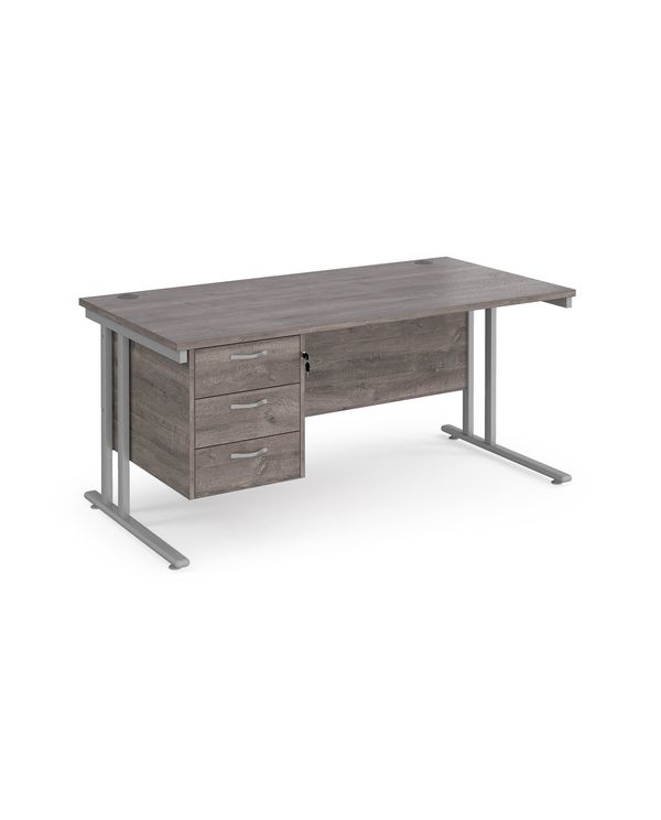 Maestro 25 straight desk 1600mm x 800mm with 3 drawer pedestal - silver cantilever leg frame, grey oak top