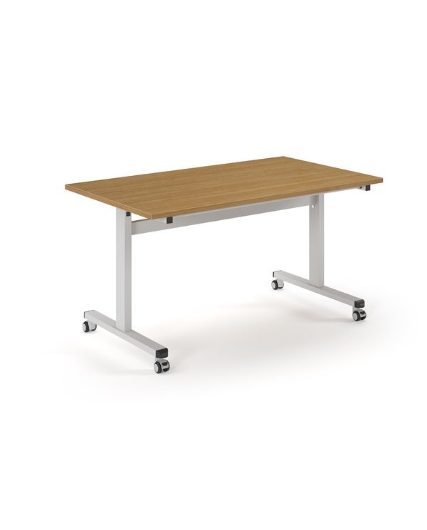 Pro Flip Rectangular Table 1400 x 800, White Frame, Oak Top