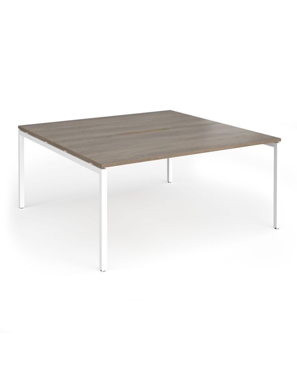 Connex Goal-Post 1600 x 1600 x 725mm Back to Back Desk (2 x 1600mm) - White Frame / Nebraska Oak Top