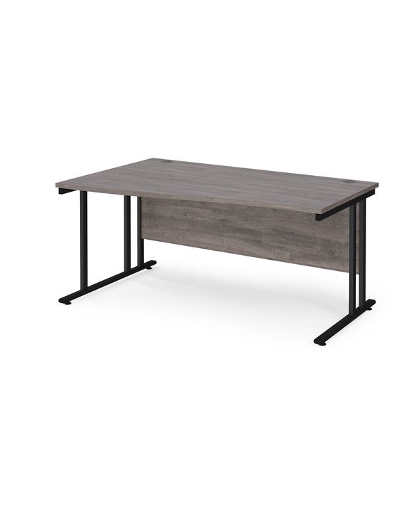 Maestro 25 left hand wave desk 1600mm wide - black cantilever leg frame, grey oak top