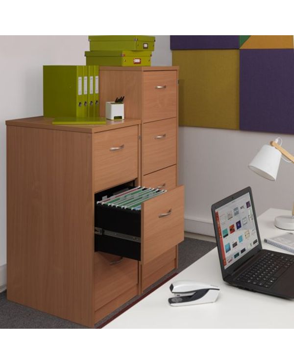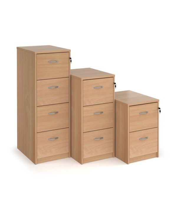 Wooden 2 drawer filing cabinet with silver handles 730mm high - beech