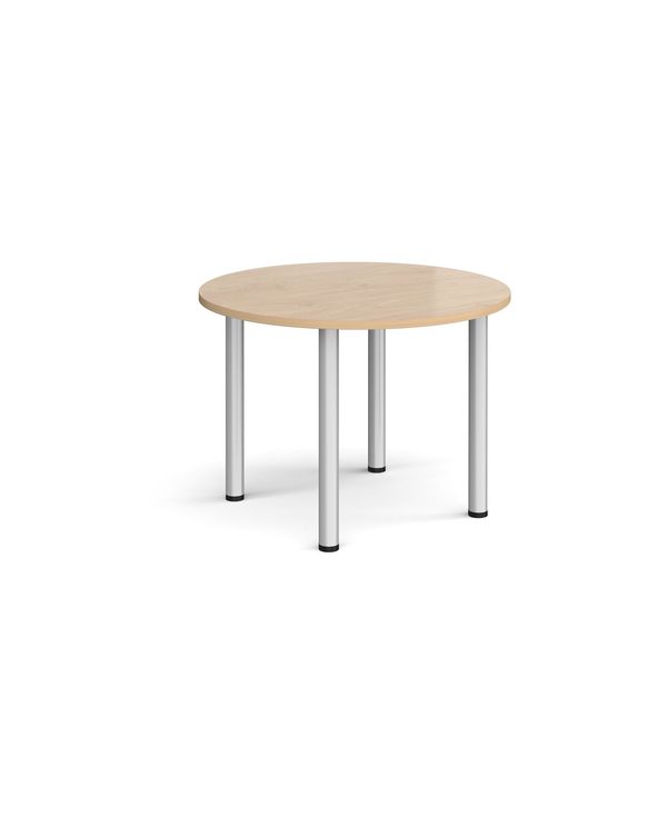 Circular silver radial leg meeting table 1000mm - Kendal Oak