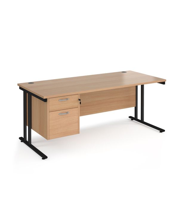 Maestro 25 straight desk 1800mm x 800mm with 2 drawer pedestal - black cantilever leg frame, beech top
