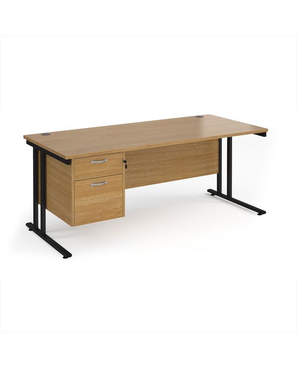 Maestro 25 straight desk 1800mm x 800mm with 2 drawer pedestal - black cantilever leg frame, oak top