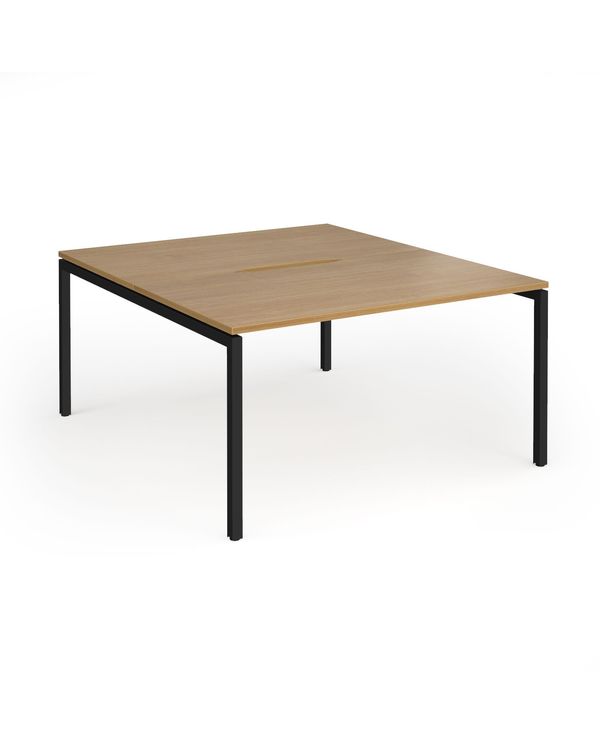 Connex Goal-Post 1400 x 1600 x 725mm Back to Back Desk (2 x 1400mm) - Black Frame / Oak Top