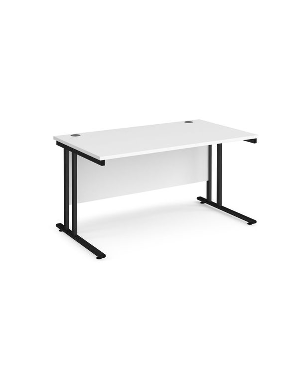 Maestro 25 straight desk 1400mm x 800mm - black cantilever leg frame, white top