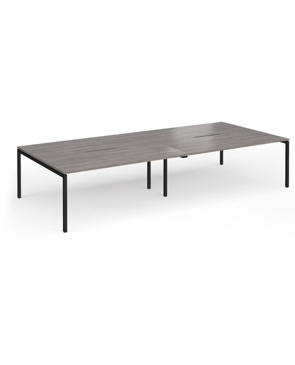 Connex Goal-Post 3600 x 1600 x 725mm Back to Back Desk (4 x 1800mm) - Black Frame / Grey Oak Top