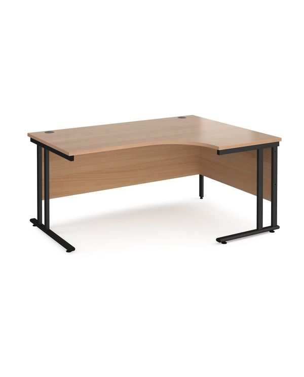 Maestro 25 right hand ergonomic desk 1600mm wide - black cantilever leg frame, beech top