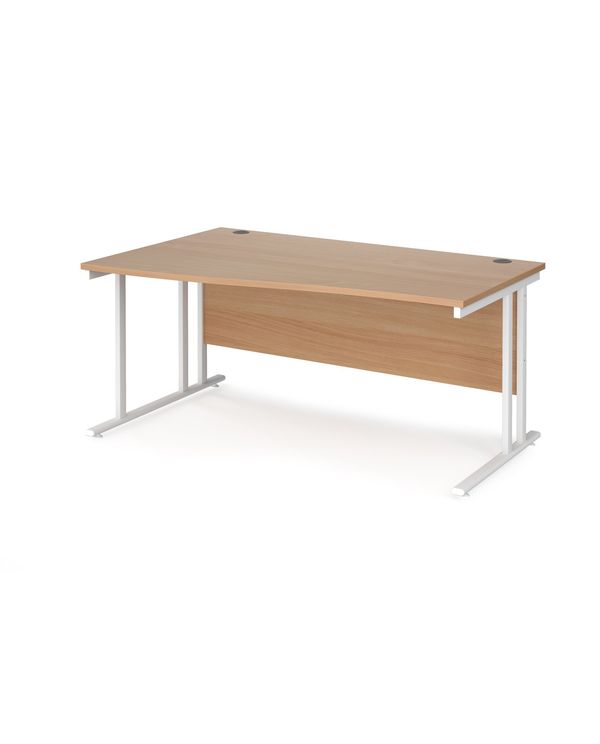 Maestro 25 left hand wave desk 1600mm wide - white cantilever leg frame, beech top