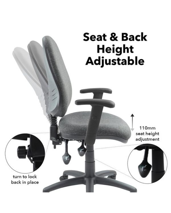 Vantage 200 3 lever asynchro operators chair with adjustable arms - charcoal