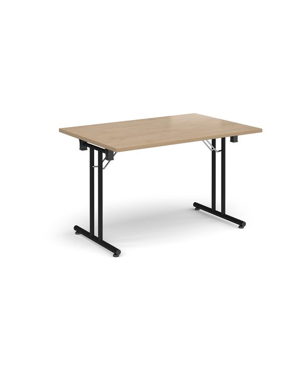 Rectangular folding leg table with black legs and straight foot rails 1200mm x 800mm - Kendal Oak